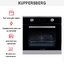 Духовой шкаф Куперсберг HO-656-T полностью встраивается в тумбу под варочной поверхностью или в колонну вместе с другой техникой. Полноразмерная модель стандартных габаритов легко вписывается в обычную кухонную мебель: высота и ширина прибора составляют 60 см, а глубина — 57 см. Размеры ниши для встраивания составляют 60 см по высоте, 56 см по ширине и 57 см по глубине. При встраивании необходимо убедиться, что между стенками прибора и мебелью остаются зазоры не менее 2 мм, воздух можно беспрепятственно циркулировать, а кабель питания не перегнулся и не пережат.