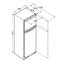 Прибор представлен в отдельно стоящем исполнении: его преимущество — небольшие размеры, которые делают его пригодным для помещений любой площади. Место установки можно выбрать произвольно, но не рекомендуется размещать прибор возле источников тепла. Высота холодильника — 157 см, ширина составляет 56 см, а глубина — около 63 см. Прибор легко переместить на другое место благодаря весу всего 51 кг и транспортировочным колесикам. Модель относится к дизайн-коллекции SwingLine и выглядит стильно благодаря скошенным углам. Такая конструкция способствует и безопасности при пользовании прибором.