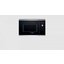 Модель с фасадом черного цвета и отделкой из нержавеющей стали имеет навесную дверцу, которая открывается справа налево нажатием на кнопку. Боковая панель управления находится справа: на ней имеется большой LED-дисплей, поворотный программатор и кнопки. Когда прибор не работает, дисплей представляет собой часы, показывающие время в 24-часовом формате. После запуска программы на нем отображается время до завершения готовки. Утапливаемый поворотный переключатель служит для установки времени суток, длительности приготовления или выбора программы. Сенсорные кнопки позволяют задать мощность микроволн, выбрать вес продуктов, а также воспользоваться дополнительными опциями.