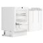 Устройство без морозильника в стальном корпусе высотой 82 см имеет общий объем 36 литров. Его особенность — оригинальная конструкция двери с выдвижной тележкой. Модель оснащена режимом автоматического суперохлаждения SuperCool, при выборе которого температура в холодильной камере понижается до +2 °С и остается на этом уровне в течение 12 часов, что особенно удобно при загрузке большого количества свежих продуктов. Сигнальный датчик открытой двери срабатывает автоматически через 60 секунд, так что продукты не успевают нагреться. Цокольная панель Vario позволяет отрегулировать встраиваемую холодильную камеру при установке под столешницу по высоте и глубине. Высоту каждой из ножек можно изменить максимум на 60 мм, а вентиляционную решетку сдвинуть в пределах до 55 мм. Ящик LiftUp не только легко извлекается, но и способен выдерживать вес продуктов до 4 кг. Закрытая электронная панель управления с кнопками и ЖК-дисплеем MagicEye предусматривает цифровую регулировку температуры от +2°C до +9°C. Полки из закаленного стекла выполнены в дизайне Premium GlassLine. Светодиодное потолочное освещение отличается долговечностью и гарантирует отличный обзор.
