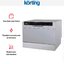 Кертинг KDF 2050 S — отдельно стоящее устройство, которое можно разместить в нише или установить прямо на столешнице. Несмотря на скромные габариты, она способна вымыть за один рабочий цикл до 6 комплектов посуды. Как известно, в такой комплект входят одна глубокая и одна мелкая тарелка, чашка с блюдцем, салатник или тарелка для десерта, вилка и ложка. Реальную вместимость посудомойки следует выбирать, учитывая, что в нее будут загружены крупные предметы — кастрюли или сковороды. Модель в корпусе серебристого цвета с черной электронной панелью управления в верхней части выглядит очень стильно. Транспортировка устройства не потребует много усилий благодаря весу всего 24 кг. Машина изготовлена на собственном предприятии компании в Китае, официальная гарантия производителя выдается сроком на 24 месяца.