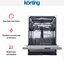 Korting KDI-60110 предназначена для встраивания в кухонную мебель. Вам не придется заказывать тумбу для встройки отдельно, так как машинка имеет стандартные размеры: ширину 60 см, высоту 81,5 см и глубину 55 см. На дверце крепится мебельный фасад, который подбирается в соответствии с цветом и дизайном вашей кухни. Панель управления серебристого цвета с кнопками, таймером и ЖК-дисплеем находится на торце дверцы и не видна, когда машина работает.
