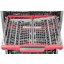 Опуская или поднимая корзину, вы можете положить в нее крупную или обычную посуду. Благодаря этому отмываются не только обеденные тарелки, но и сковороды, кастрюли.