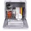 Основное преимущество посудомойки Маунфилд MWF 07 IM — возможность установки на столешницу и компактность. В камеру помещается до трех стандартных комплектов посуды, каждый из которых включает глубокую тарелку для супа, миску для салата или тарелку для десерта, тарелку для вторых блюд, чашку, блюдце, вилку и ложку. Все предметы, в том числе кастрюли, сковороды и другая крупная посуда, размещаются в одной корзине, предусмотрен съемный лоток для столовых приборов.