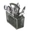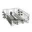 Корзина для столовых приборов достаточно высока, ввиду чего она устанавливается в нижнем коробе, где для нее предусматривается специальное место между разделителями для тарелок. Приборы в корзине могут размещаться как вниз, так и вверх рукоятками — это зависит от количества приборов и требований пользователя. Однако острые предметы — ножи или вилки — необходимо размещать острием вниз для предотвращения травм. Ножи рекомендуется размещать в корзинах с осторожностью, поскольку лезвия из керамики, например, могут затупиться. Чтобы избежать этого, следует использовать фирменные моющие средства и обязательно располагать ножи по отдельности, чтобы они не соприкасались с другими предметами.