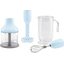 Комплект аксессуаров для погружного блендера, голубой, чаша, измельчитель, венчик, насадка для пюре.
