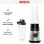 Стационарный блендер Bosch позволяет готовить смузи, коктейли, смешивать соусы и заправки, измельчать продукты до состояния пюре и многое другое. Его конструкция подразумевает автономную работу — вам нужно только положить овощи или фрукты и выбрать режим. Корпус сделан в основном из металла, что повышает надежность прибора. Он может как влиться в общую гамму интерьера, так и стать ярким акцентом; доминирующий цвет — черный. Благодаря специальным нескользящим ножкам блендер сохраняет устойчивость даже на высоких оборотах.