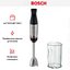 Погружной блендер Bosch позволяет готовить смузи, коктейли, смешивать соусы и заправки и многое другое. Такая конструкция требует вашего участия — нужно держать рукоятку с насадкой и контролировать направление движения. Плюс в том, что можно использовать ее прямо в кастрюле, когда готовите, например, суп-пюре. Корпус сделан в основном из металла, что повышает надежность прибора. Он может как влиться в общую гамму интерьера, так и стать ярким акцентом; доминирующий цвет — черный.