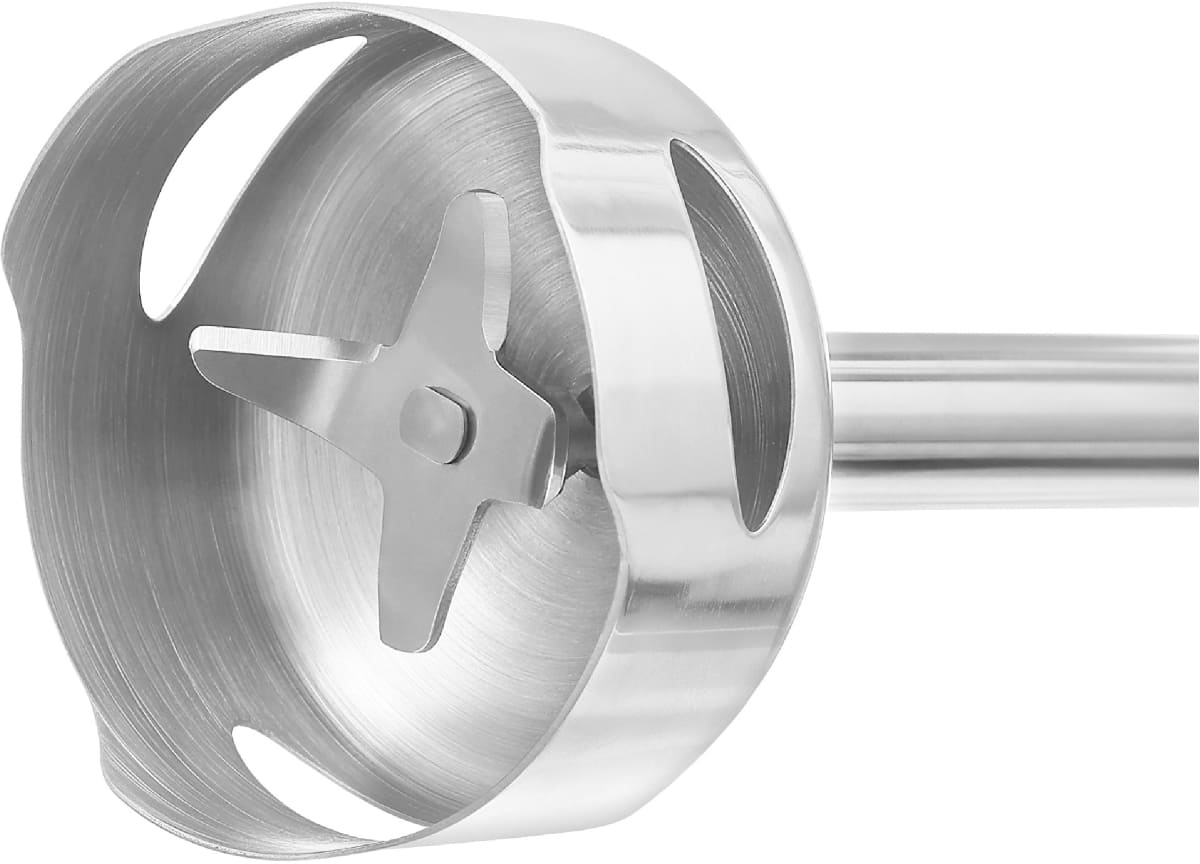 Комплектация включает съёмную ножевую насадку из высококачественной нержавеющей стали, устойчивой к коррозии и износу, а также мерный стакан и дополнительные аксессуары (в зависимости от версии), превращающие устройство в мини-кухонный комбайн. Все элементы легко разбираются и моются вручную или в посудомоечной машине, что значительно упрощает уход.