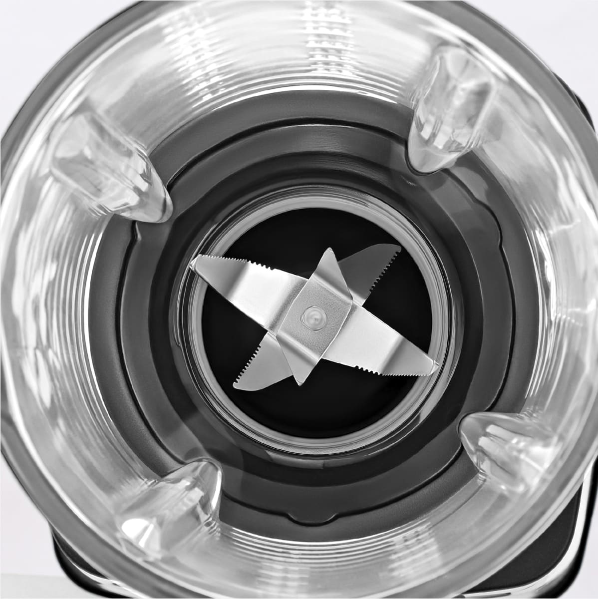 Ножевая система выполнена из нержавеющей стали и спроектирована по принципу вихревого потока, что гарантирует полное перемешивание содержимого без образования комков или неизмельчённых участков. Все элементы легко разбираются и подлежат очистке в посудомоечной машине, что значительно упрощает уход.