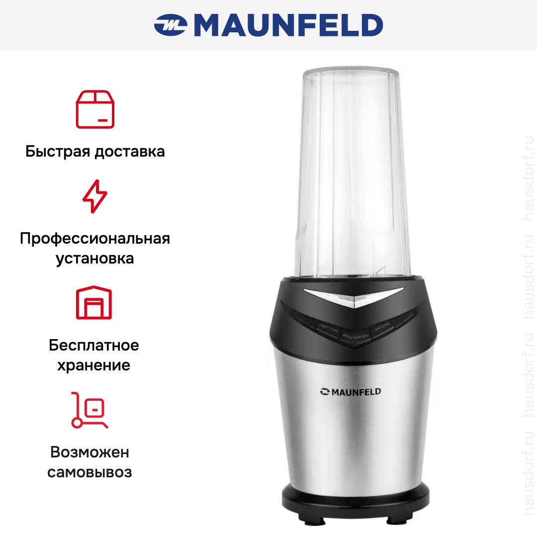 Стационарный блендер Maunfeld позволяет готовить смузи, коктейли, смешивать соусы и заправки, измельчать продукты до состояния пюре и многое другое. Его конструкция подразумевает автономную работу — вам нужно только положить овощи или фрукты и выбрать режим. Корпус сделан в основном из металла, что повышает надежность прибора. Он может как влиться в общую гамму интерьера, так и стать ярким акцентом; доминирующий цвет — нержавеющая сталь. Благодаря специальным нескользящим ножкам блендер сохраняет устойчивость даже на высоких оборотах.