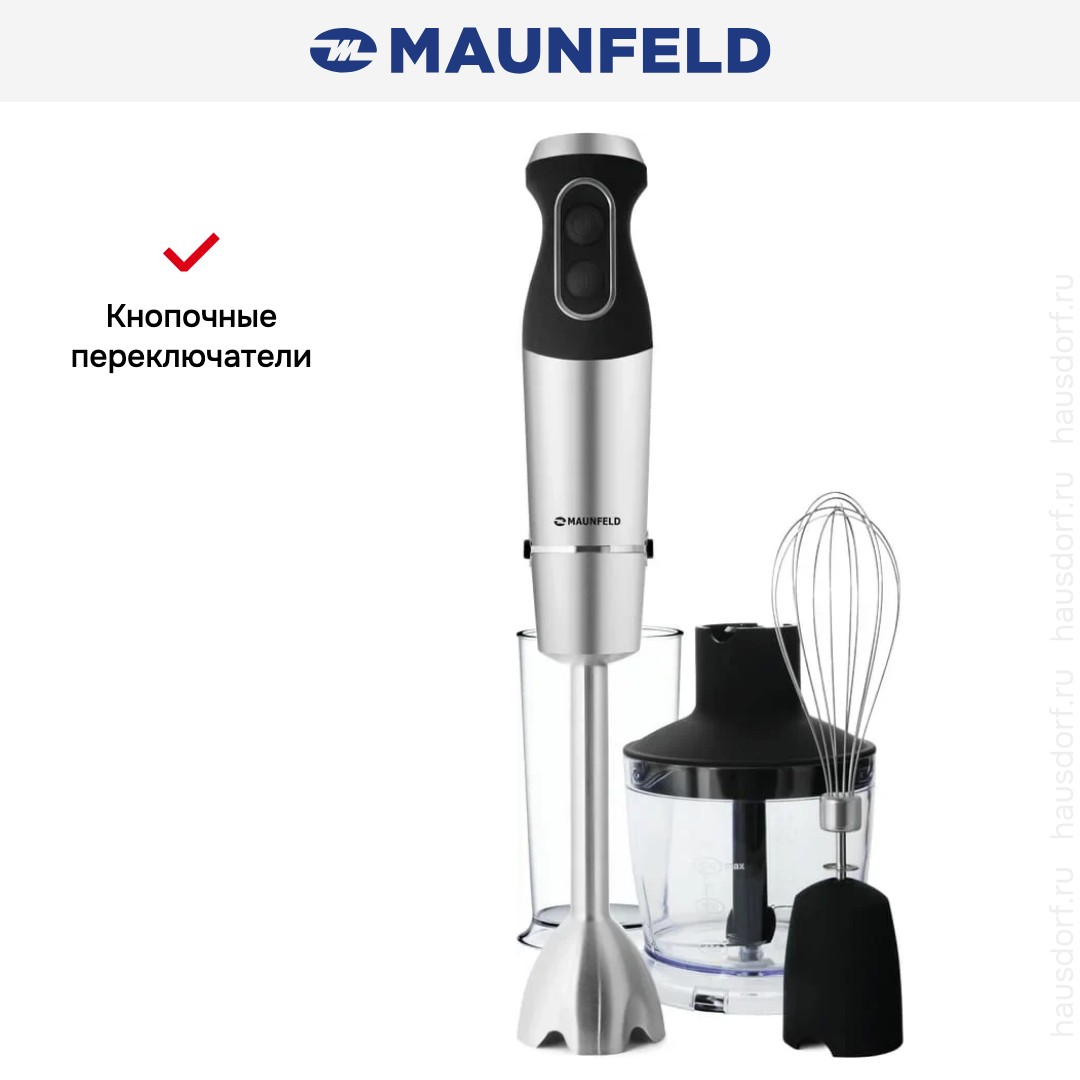 Погружной блендер Maunfeld позволяет готовить смузи, коктейли, смешивать соусы и заправки и многое другое. Такая конструкция требует вашего участия — нужно держать рукоятку с насадкой и контролировать направление движения. Плюс в том, что можно использовать ее прямо в кастрюле, когда готовите, например, суп-пюре. Корпус сделан в основном из металла, что повышает надежность прибора. Он может как влиться в общую гамму интерьера, так и стать ярким акцентом; доминирующий цвет — черный.