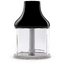 В комплектацию входят измельчитель, насадка для пюре, венчик и чаша на 1,4 л из новейшего материала тритана. Крышка из того же материала. Чаша промаркирована в литрах и унциях, имеет удобную и эргономичную ручку. Насадка для пюре включает в себя пластиковый корпус и такие же ножи с технологией для давления овощей и фруктов в пюре. Венчик подсоединяется к блендеру с помощью адаптера. Его также можно мыть в посудомоечной машине.