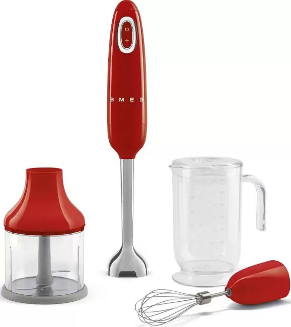 Погружной блендер Smeg HBF03RDEU выполнен в насыщенном красном цвете и сочетает винтажную эстетику бренда с современными линиями корпуса.