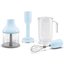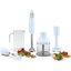 Управление осуществляется при помощи кнопочных переключателей, что делает его использование простым и удобным. В комплекте идут такие полезные аксессуары, как измельчитель, насадка для пюре, насадка-венчик и ножи из нержавеющей стали с системой FlowBlend.