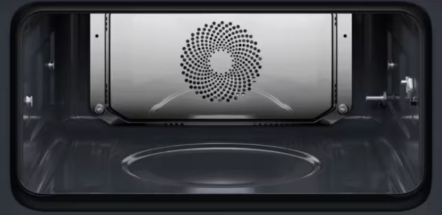 Воздух нагревается с помощью кольцевого нагревательного элемента, а затем равномерно распределяется по всему объему благодаря работе вентилятора. Блюда в этом режиме готовятся на одном уровне — как правило, среднем — для лучшего пропекания со всех сторон. Еще одно преимущество этого режима — использование достаточно низких температур. Его особенности позволяют устанавливать температуру на 20-30 градусов ниже, чем при традиционном нагрева: оптимальный уровень температуры в этом режиме — около 180 градусов.