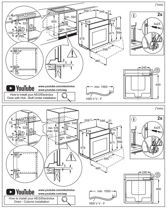 Ко всем моделям прилагаются подробные инструкции по установке, где указаны точные размеры ниши для каждой конкретной духовки.