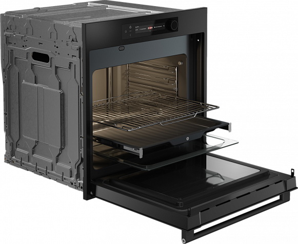 Еще одна разработке «Миле» — функция MotionReact, которая реагирует на приближение человека к духовке, находящейся в режиме ожидания. Система фиксирует движение и самостоятельно включает подсветку дисплея и камеры. Эта же функция выключает подсветку — например, если закрыть мебельный фасад, скрывающий встроенную духовку.