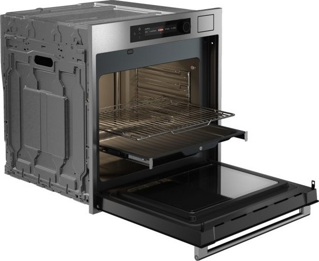 Известная немецкая компания NEFF выпустила духовые шкафы с уникальной дверцей HIDE® и удобной вращающейся ручкой SLIDE®: эта дверца полностью убирается в специальное отделение под днищем духовки при помощи специального механизма. Таким образом доступ к содержимому духового шкафа становится более удобным, а дверца не мешает обзору или каким-либо действиям в процессе приготовления.