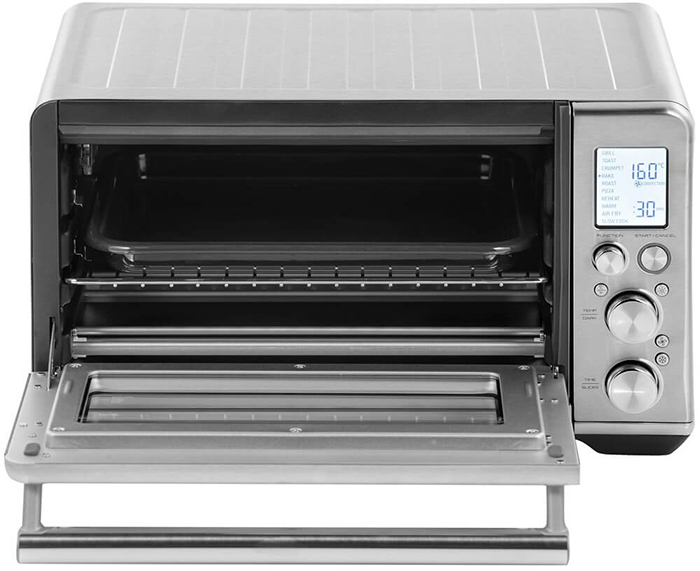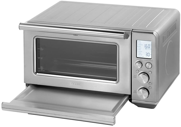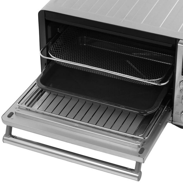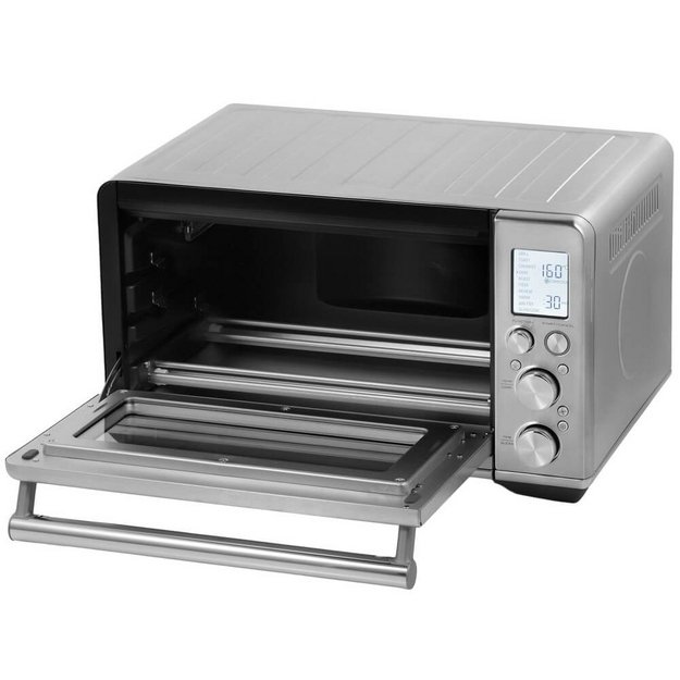 Компактный духовой шкаф в корпусе из нержавеющей стали. Вес всего 6 кг и удобная ручка для переноски позволяют использовать его для выездов и пикников. Стальная камера с антипригарным покрытием быстро нагревается и равномерно распределяет тепло по всему объему. Четыре кварцевых нагревательных элемента могут использоваться совместно или по отдельности и позволяют установить температуру в диапазоне 50-230°С.