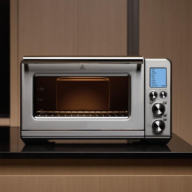 Модель с 8 автоматическими программами, в числе которых: «Печенье», «Пицца», «Тосты» и т.д. Вы можете выбирать время и температуру, все данные отображаются на дисплее. Установка параметров происходит при помощи поворотного программатора и кнопок. Предусмотрена программа для размораживания и быстрого разогрева продуктов. В верхней части имеется поверхность из керамики для подогрева посуды. Решетка в камере может устанавливаться в трех положениях по высоте. Функция A BIT MORE позволяет продлить время приготовления с сохранением установленных параметров. Система интеллектуального распределения мощности повышает эффективность приготовления.
