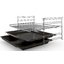 В стандартную комплектацию любого духового шкафа входят один или два противня — эмалированных или с антипригарным покрытием — и решетка. Единственный противень, как правило, имеет низкие бортики и предназначается для приготовления выпечки. Если духовка комплектуется двумя противнями, то второй отличается более высокими бортиками — его можно использовать для запекания мяса, птицы, овощных блюд. На решетке в духовке, не оснащенной грилем, обычно устанавливаются формы для запекания — стальные, керамические или стеклянные. В духовках премиум-класса количество противней может быть увеличено: к стандартному комплекту добавляются противни с перфорацией для мяса, специальные поддоны для сбора выделившегося сока.
