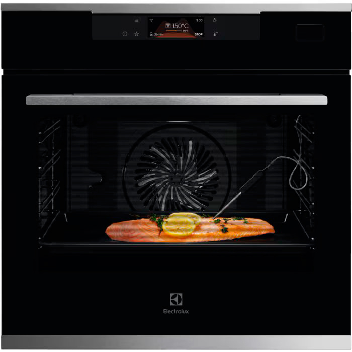 Термощуп в духовых шкафах Electrolux — это электронный термометр, который способен определить температуру внутри готовящихся блюд. Острый конец термощупа с температурным датчиком, температура измеряется непрерывно, а по достижении заданного значения духовка отключается автоматически.