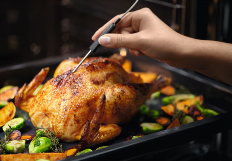 Термощуп в духовых шкафах Electrolux — это электронный термометр, который способен определить температуру внутри готовящихся блюд. Острый конец термощупа с температурным датчиком, температура измеряется непрерывно, а по достижении заданного значения духовка отключается автоматически.