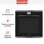 Особенности дизайна и внешней панели управления — также важный пункт при выборе духовки на кухню. В данной модели нужно обратить внимание на цвет — черное стекло, охлаждение двери, чтобы поверхность и мебель вокруг не нагревались.