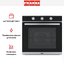 Управление производится с помощью поворотных регуляторов, что обеспечивает простоту и надёжность эксплуатации. Таймер помогает контролировать процесс без постоянного наблюдения, а галогенное освещение удобно для оценки готовности блюд через стекло. Откидная дверца предназначена для безопасной работы: система доводчика и холодная внешняя поверхность снижают риск ожогов. Съёмное внутреннее стекло упрощает чистку и техническое обслуживание.
