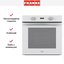 Особенности дизайна и внешней панели управления — также важный пункт при выборе духовки на кухню. В данной модели нужно обратить внимание на цвет — белое стекло, Электронная панель управления позволяет быстро разобраться в настройке программ и не требует чрезмерных усилий.