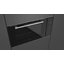 Черный духовой шкаф встраивается в нишу кухонного гарнитура — благодаря тангенциальному охлаждению мебель вокруг не нагревается и защищена от повреждений. Дверь с тройным остеклением также не пропускает высокие температуры наружу; она открывается вниз, при этом панель управления расположена сбоку, что обычно характерно для микроволновок. Такое решение повышает комфорт использования.