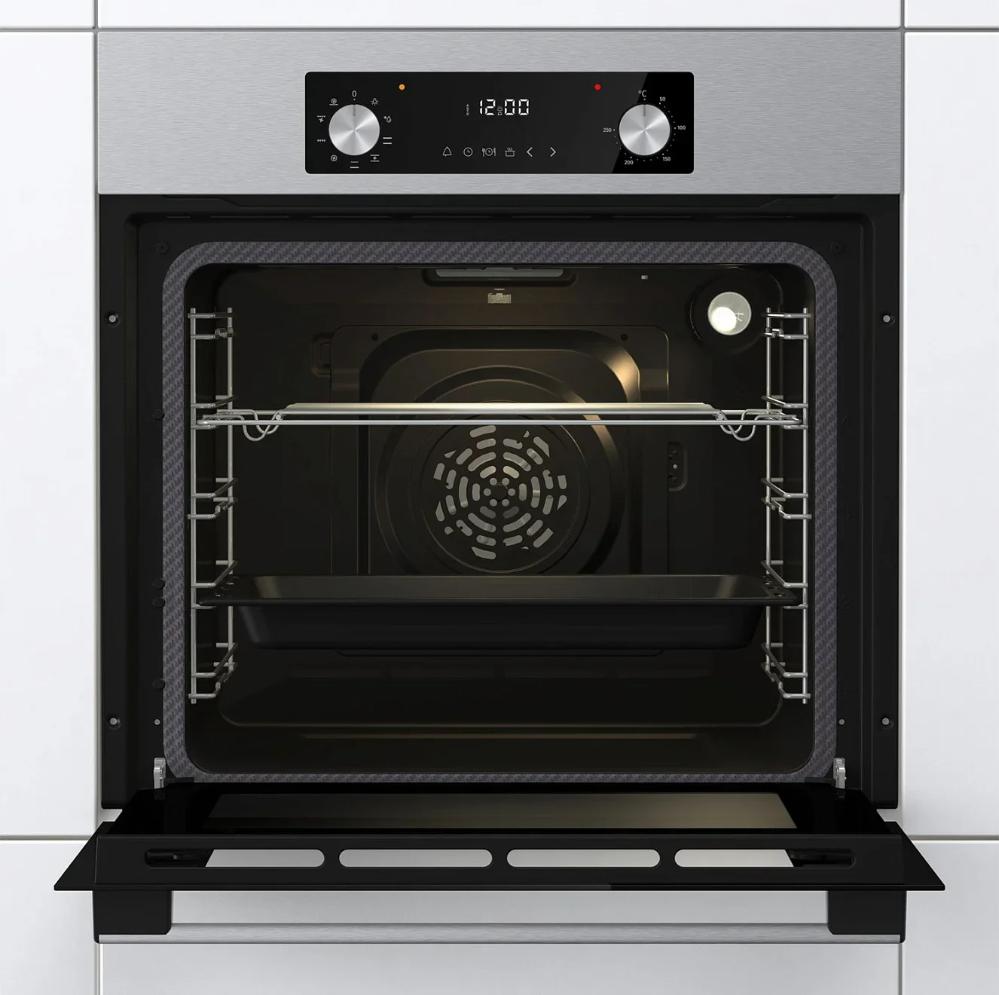 Готовьте свои лучшие блюда и пробуйте новые рецепты с духовым шкафом Gorenje BO6737E02NX! Стандартные размеры и большой объем внутренней камеры — выбор тех, кто много готовит для семьи или частых праздничных встреч с друзьями. Желательно заранее продумать расположение такой модели в кухонном гарнитуре.