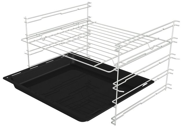 В стандартную комплектацию любого духового шкафа входят один или два противня — эмалированных или с антипригарным покрытием — и решетка. Единственный противень, как правило, имеет низкие бортики и предназначается для приготовления выпечки. Если духовка комплектуется двумя противнями, то второй отличается более высокими бортиками — его можно использовать для запекания мяса, птицы, овощных блюд. На решетке в духовке, не оснащенной грилем, обычно устанавливаются формы для запекания — стальные, керамические или стеклянные. В духовках премиум-класса количество противней может быть увеличено: к стандартному комплекту добавляются противни с перфорацией для мяса, специальные поддоны для сбора выделившегося сока.
