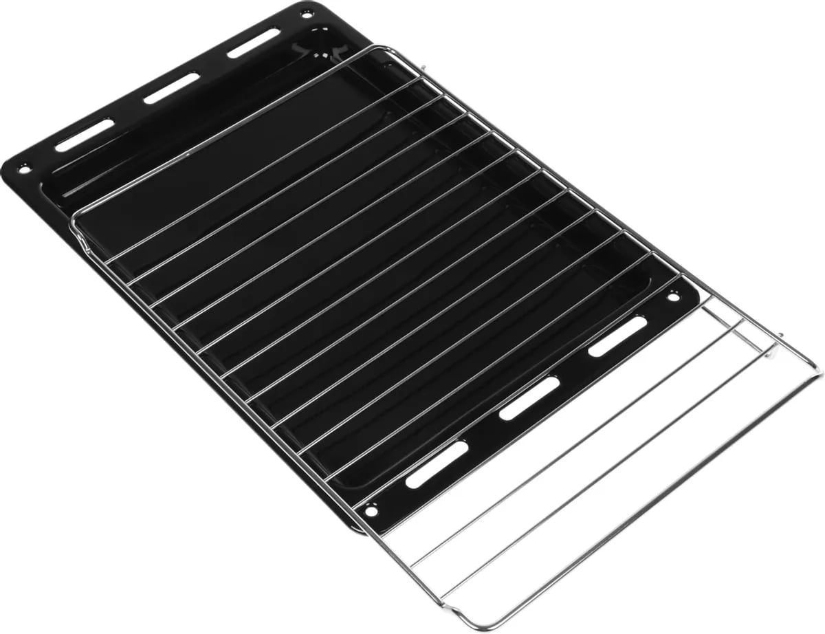 В стандартную комплектацию любого духового шкафа входят один или два противня — эмалированных или с антипригарным покрытием — и решетка. Единственный противень, как правило, имеет низкие бортики и предназначается для приготовления выпечки. Если духовка комплектуется двумя противнями, то второй отличается более высокими бортиками — его можно использовать для запекания мяса, птицы, овощных блюд. На решетке в духовке, не оснащенной грилем, обычно устанавливаются формы для запекания — стальные, керамические или стеклянные. В духовках премиум-класса количество противней может быть увеличено: к стандартному комплекту добавляются противни с перфорацией для мяса, специальные поддоны для сбора выделившегося сока.