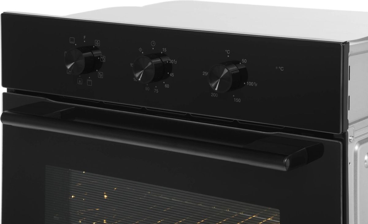 Особенности дизайна и внешней панели управления — также важный пункт при выборе духовки на кухню. В данной модели нужно обратить внимание на цвет — черный, Механическая панель управления позволяет быстро разобраться в настройке программ и не требует чрезмерных усилий.