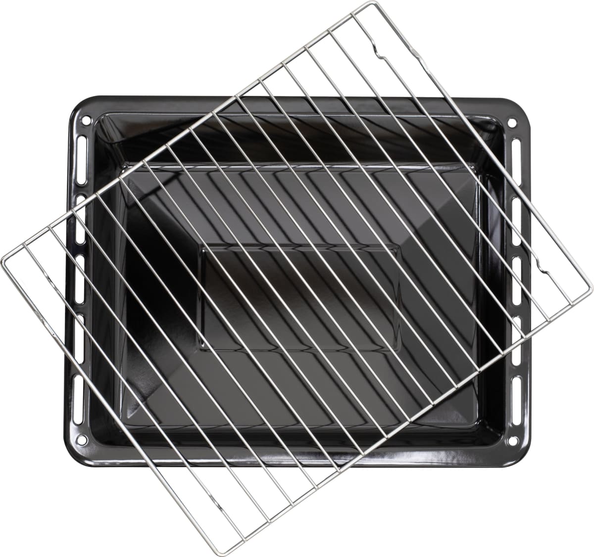 В стандартную комплектацию любого духового шкафа входят один или два противня — эмалированных или с антипригарным покрытием — и решетка. Единственный противень, как правило, имеет низкие бортики и предназначается для приготовления выпечки. Если духовка комплектуется двумя противнями, то второй отличается более высокими бортиками — его можно использовать для запекания мяса, птицы, овощных блюд. На решетке в духовке, не оснащенной грилем, обычно устанавливаются формы для запекания — стальные, керамические или стеклянные. В духовках премиум-класса количество противней может быть увеличено: к стандартному комплекту добавляются противни с перфорацией для мяса, специальные поддоны для сбора выделившегося сока.