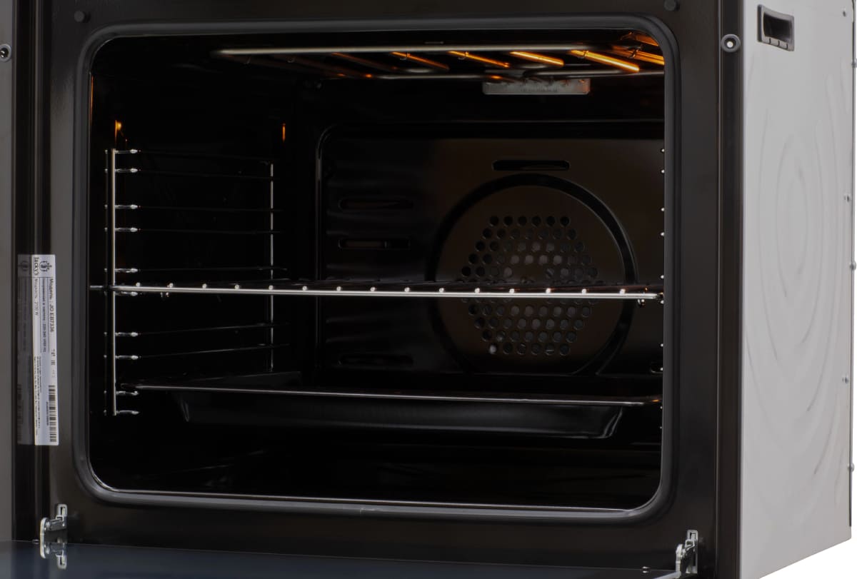 Духовой шкаф Jackys JO EB7336 — это современное кухонное устройство, сочетающее элегантный дизайн, интуитивное управление и высокую функциональность. Модель относится к независимому типу, что позволяет размещать её в любом удобном месте кухонного гарнитура без привязки к варочной поверхности. Подключение осуществляется к электрической сети, обеспечивая стабильную и безопасную эксплуатацию. Габариты корпуса составляют 60 см в высоту, 59,5 см в ширину и 55 см в глубину, что соответствует стандартам встраиваемой техники. Для корректной установки требуется ниша размером 59×56,3×55 см, гарантирующая плотное прилегание и эффективную вентиляцию. В упакованном виде изделие занимает 66,1×66,1×65 см, что учитывается при транспортировке и временной установке. Управление реализовано с помощью сенсорной панели, дополненной утапливаемыми поворотными регуляторами и сенсорными кнопками TouchControl, что делает взаимодействие с прибором одновременно стильным, точным и удобным. Наличие цифрового дисплея обеспечивает наглядный контроль над параметрами работы, а функция отсрочки включения позволяет запланировать начало приготовления на заданное время — идеальное решение для занятых пользователей. Благодаря продуманной конструкции и сбалансированным габаритам, духовка гармонично вписывается в интерьеры различного стиля, не нарушая их целостности. При этом внутренняя камера остаётся достаточно вместительной для повседневных и праздничных задач. Равномерный прогрев, обеспечиваемый электрической системой, позволяет добиваться превосходных результатов при выпечке, запекании и других видах термообработки. Надёжная сборка, качественные компоненты и внимание к деталям делают этот прибор долговечным и практичным в ежедневной эксплуатации. Он станет не просто техникой, а настоящим кухонным помощником, способным облегчить процесс готовки и раскрыть новые грани кулинарного мастерства. Выбирая данную модель, вы получаете сочетание технологичности, эстетики и удобства, отвечающее требованиям современного образа жизни.