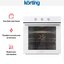 Korting OKB 3821 EW — встраиваемый электрический духовой шкаф из коллекции Motion с фасадом из белого стекла. Камера «Home Made» с паровой очисткой имеет объем 77 литров. Модель оснащена десятью режимами нагрева, в числе которых размораживание продуктов, большой гриль, пицца, быстрый разогрев. На механической панели управления находятся три утапливаемых поворотных переключателя. На одном уровне предусмотрены телескопические направляющие. Имеется таймер обратного отсчета с автоматическим отключением. Для защиты от ожогов служат двойное стекло в дверце духовки Кортинг OKB 3821 EW и система вентиляции.