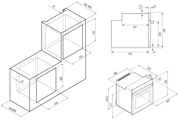 Ко всем моделям прилагаются подробные инструкции по установке, где указаны точные размеры ниши для каждой конкретной духовки.