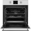 Особенности дизайна и внешней панели управления — также важный пункт при выборе духовки на кухню. В данной модели нужно обратить внимание на цвет — белый, Электронная панель управления позволяет быстро разобраться в настройке программ и не требует чрезмерных усилий.