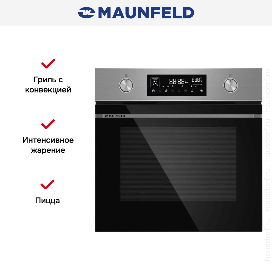 Готовьте свои лучшие блюда и пробуйте новые рецепты с духовым шкафом Maunfeld AEOH60106S! Стандартные размеры и большой объем внутренней камеры — выбор тех, кто много готовит для семьи или частых праздничных встреч с друзьями. Желательно заранее продумать расположение такой модели в кухонном гарнитуре.