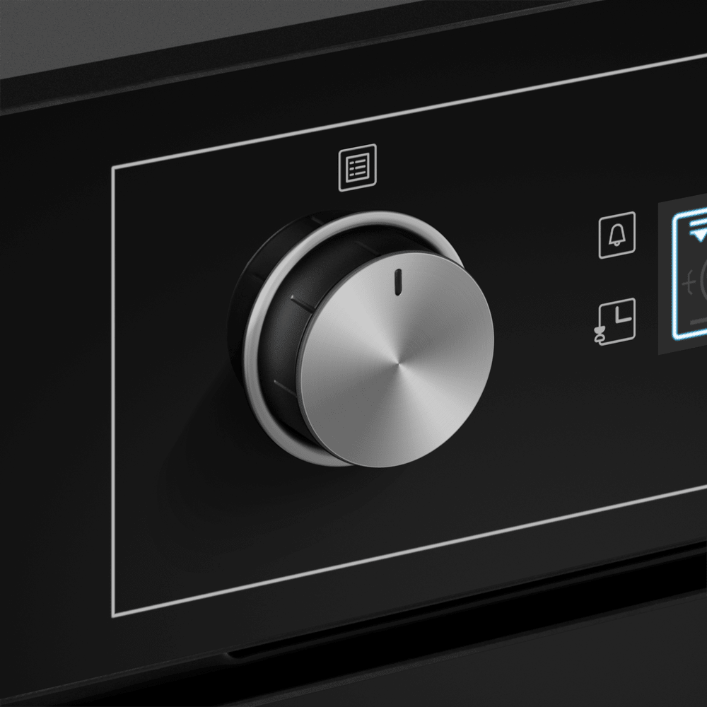 Особенности дизайна и внешней панели управления — также важный пункт при выборе духовки на кухню. В данной модели нужно обратить внимание на цвет — черный,