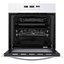 Белый духовой шкаф отлично подходит современной кухне светлых тонов. Удобная откидная дверь с двумя стеклами, одно из которых содержит трамп-линии, оставляющих достаточно пространства для контроля блюд во время приготовления. Управление происходит с помощью сенсорной панели управления. 11 функций для запекания мяса, рыбы, овощей, десертов включают конвекцию двух типов, гриль, комбинацию разных типов нагрева. Блюда можно расположить на 5 уровнях в зависимости от рецепта, телескопические направляющие находятся на двух уровнях. В комплекте два противня, хромированная решетка для гриля.