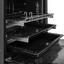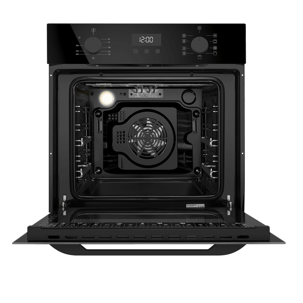Особенности дизайна и внешней панели управления — также важный пункт при выборе духовки на кухню. В данной модели нужно обратить внимание на цвет — черный, охлаждение двери, чтобы поверхность и мебель вокруг не нагревались.