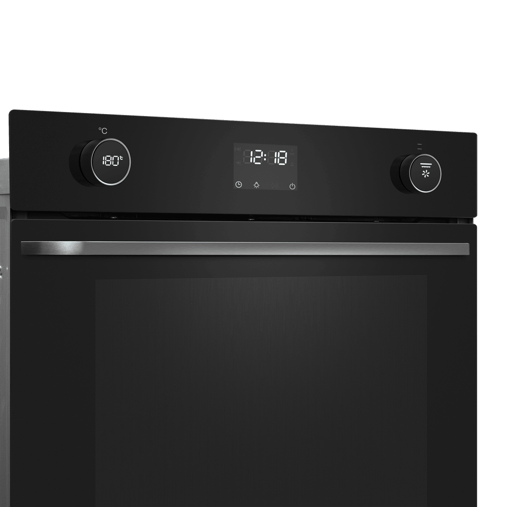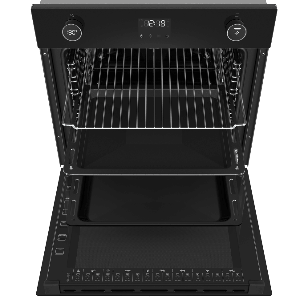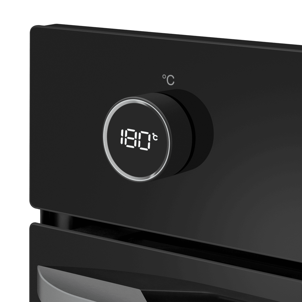 Особенности дизайна и внешней панели управления — также важный пункт при выборе духовки на кухню. В данной модели нужно обратить внимание на цвет — черный,