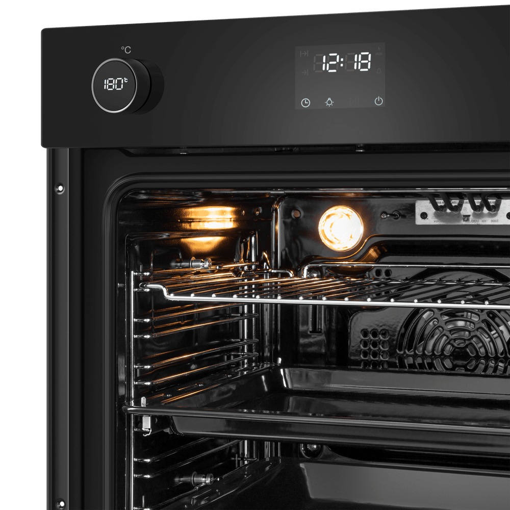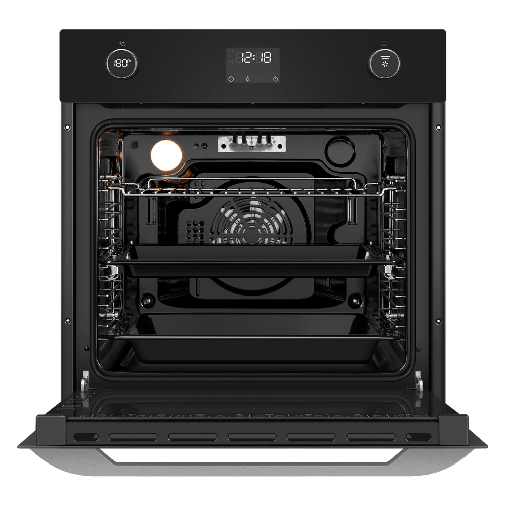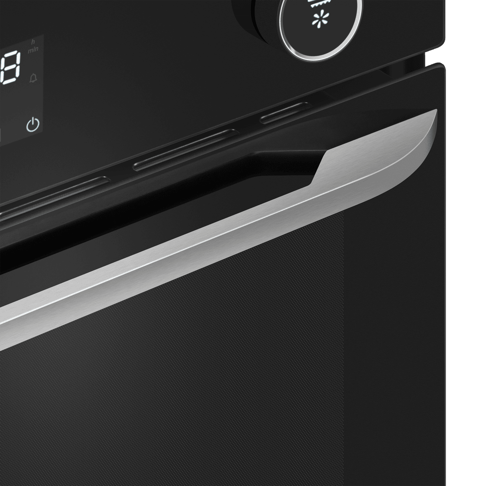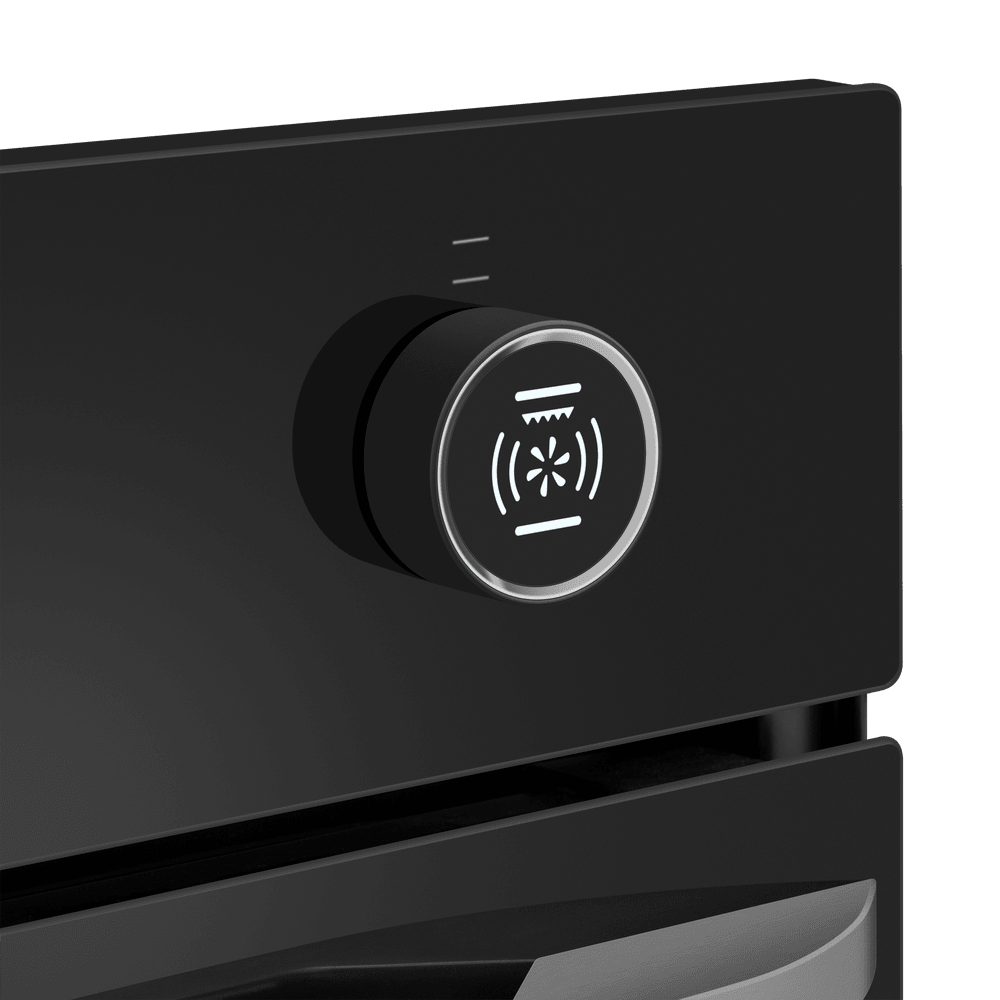 Особенности дизайна и внешней панели управления — также важный пункт при выборе духовки на кухню. В данной модели нужно обратить внимание на цвет — черный,