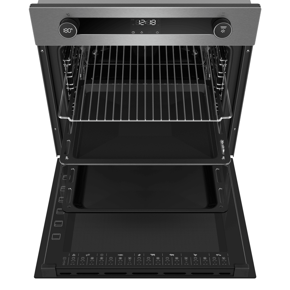 Каталитическая (EcoClean) — специальная пористая эмаль покрывает стенки и растворяет попадающий жир прямо во время готовки. Ее не накладывают на дно духовки, потому что она не защищена от сахара и молочных продуктов, поэтому его придется оттирать самостоятельно.