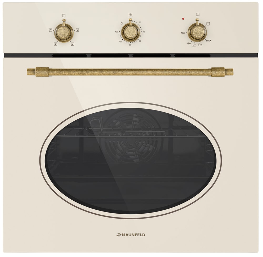 Элегантная модель с фронтальной частью в цвете слоновой кости и бронзовой фурнитурой хороша для классической кухни. В откидную дверцу вставлен тройной стеклопакет овальной формы, сама дверь не нагревается во время приготовления, снижая до минимума риск ожогов. Механические поворотные переключатели гарантируют простоту в обращении и служат еще одним интересным элементом отделки. Габариты 60×57.5×56 см и стандартизированный размер ниши 60×57.5×56 см делают установку встраиваемой техники предсказуемой и удобной.