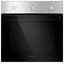 Фасад из нержавеющей стали выглядит сдержанно и благородно: спокойный металлический оттенок легко сочетается с хромированной фурнитурой и привычными кухонными поверхностями. Откидная дверца образует устойчивую площадку для противня, а три стекла создают надежную термоизоляцию, благодаря чему наружная часть остается ощутимо прохладнее. Размер корпуса сбалансирован: высота около 59,5 см, ширина 56,8 см и глубина 56 см — эти пропорции не перегружают фасад и позволяют встроить прибор в нишу с такими же габаритами без сложной доработки.